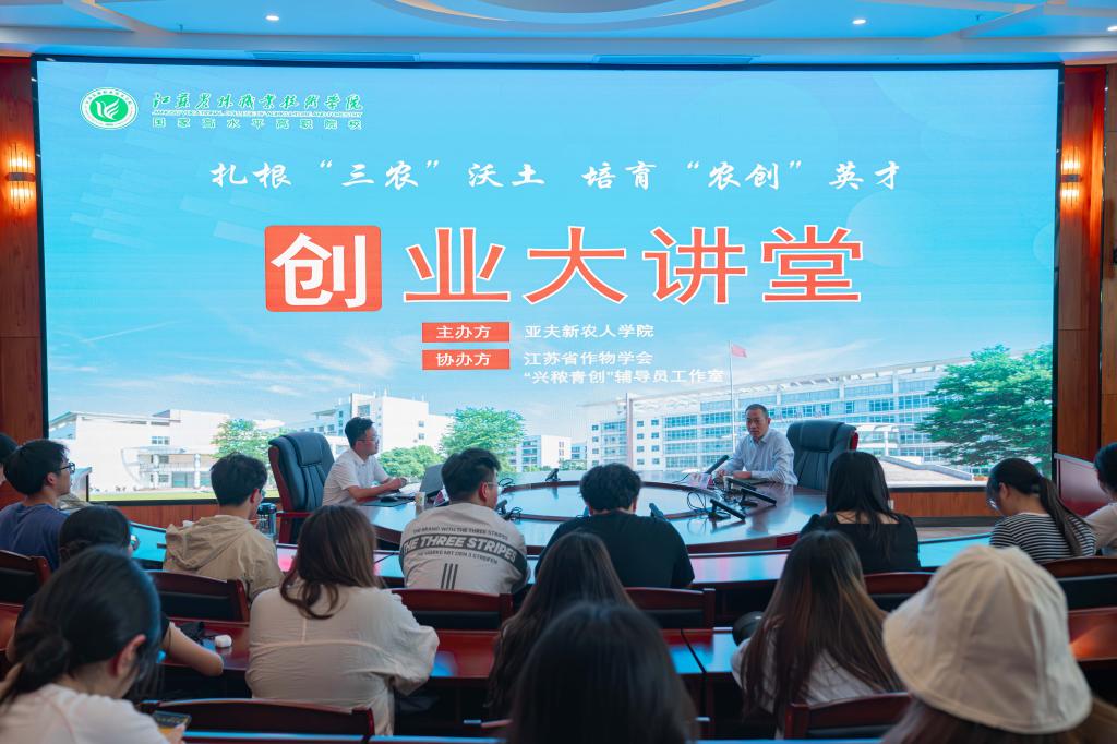 6月4日,江苏省乡村振兴好青年、江苏省“新农菁英”人才库成员、镇江市农村致富带头人、镇江市劳动模范、我院2012届毕业生吴俊峰,在大学生艺术中心107举行“从大学到‘大地’ 我们扎根在乡村”专题讲座。新农创学子聆听讲座,并与校外导师吴俊峰结对。