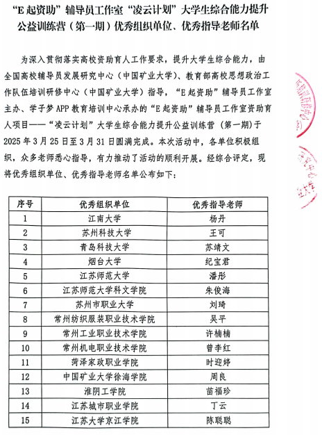 本次训练营是在全国高校辅导员发展研究中心(中国矿业大学)、教育部高校思想政治工作队伍培训研修中心的指导下,由“E起资助”辅导员工作室和学子梦APP共同举办,旨在深入贯彻落实国家资助政策,加强资助育人工作,提升家庭经济困难学生的综合能力。培训内容丰富且实用,涵盖大学生职涯规划、大学校园好沟通以及AI内容创作三大核心板块。