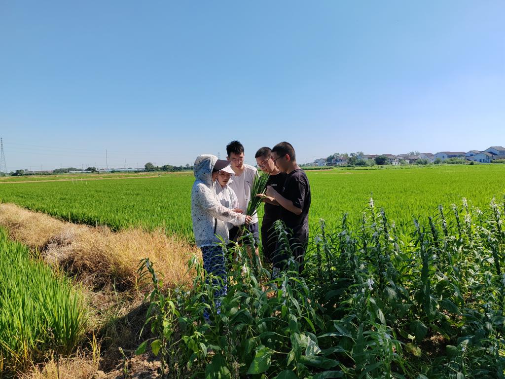 8月16日,江苏农林职业技术学院新禾粮食单产提升科技服务团深入东皇村粮食单产提升科技示范基地,开展水稻拔节孕穗期生长态势与病虫害发生情况专项考察,以精准技术支撑护航秋粮稳产丰收。