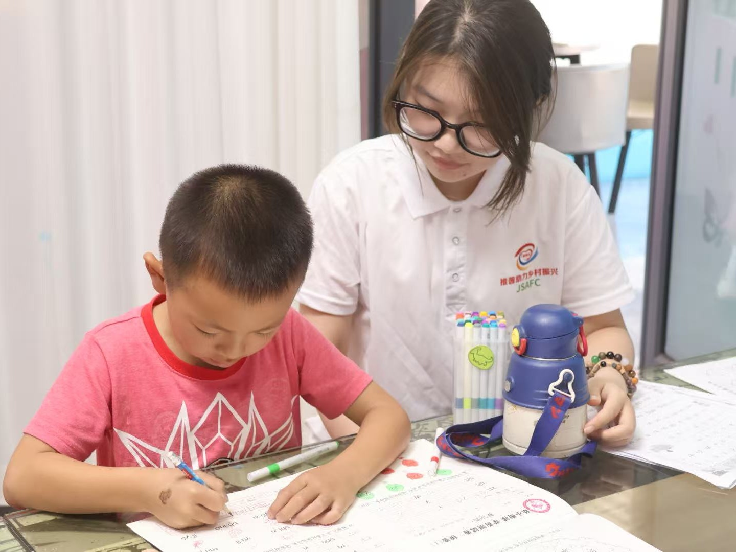 童声琅琅,传承文化文脉。在乡村“推普小课堂”中,志愿团创新采用“语言+文化”教学模式,通过带领孩子们诵读《三字经》《弟子规》纠正发音,在汉字故事会上解析其中蕴含的文化密码;设计绕口令PK、情景剧编排等互动环节,让100余名儿童在轻松愉悦的氛围中掌握标准发音。正红镇陈铸村村民深有感触的说:“孩子们现在会主动用普通话给我们讲故事,这个课堂真是办到了大家的心坎里。”