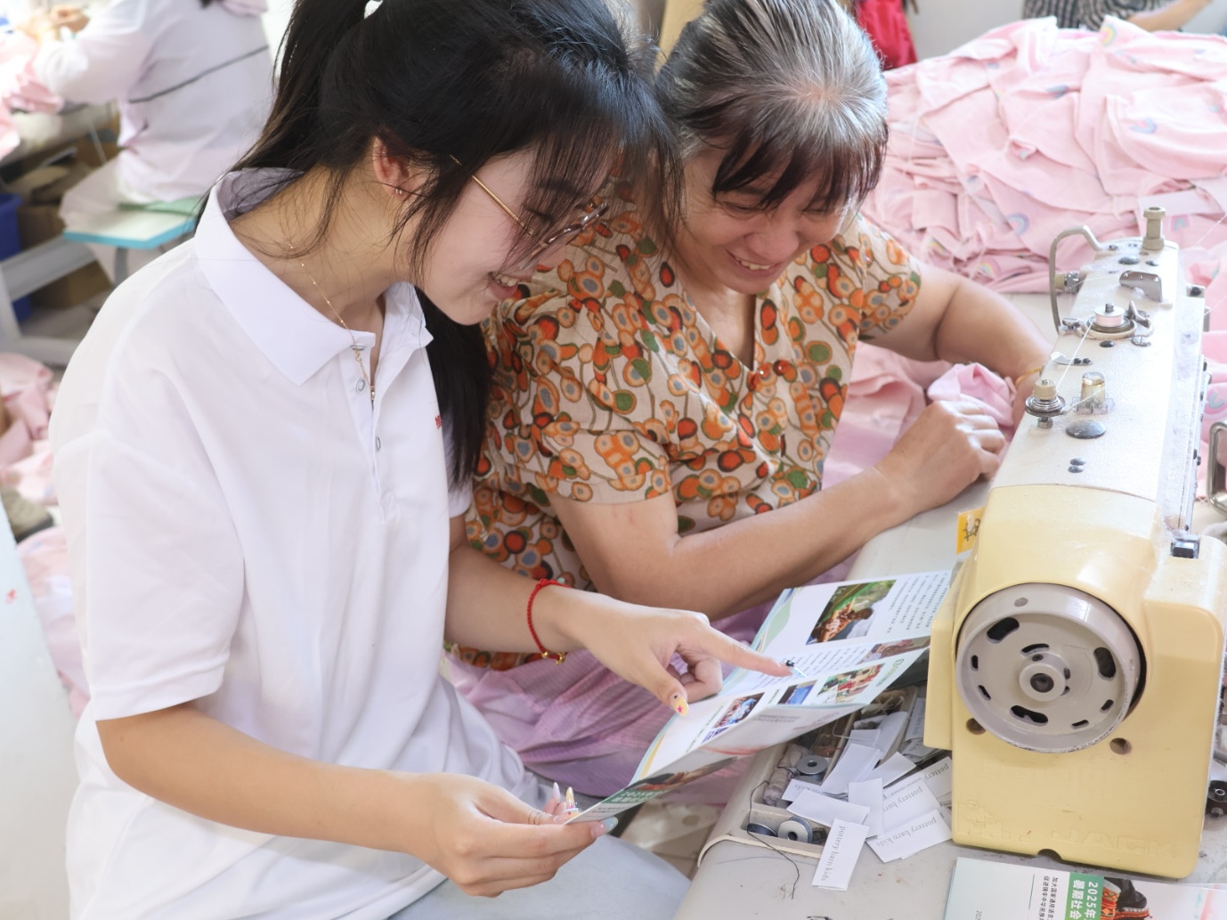 语言赋能,助推乡村发展。结合乡村治理与产业的需求,团队为村干部和村办企业职工开设“即学即用”培训课。课程聚焦政策宣讲、安全生产等实际场景,开展正音训练与术语规范教学;通过模拟村民会议、设备操作指令等实操演练,帮助60余名基层工作者打破方言壁垒。朱家桥村党总支书记杨建新表示:“如今传达政策更清晰,与外地客商的沟通也顺畅了许多。”