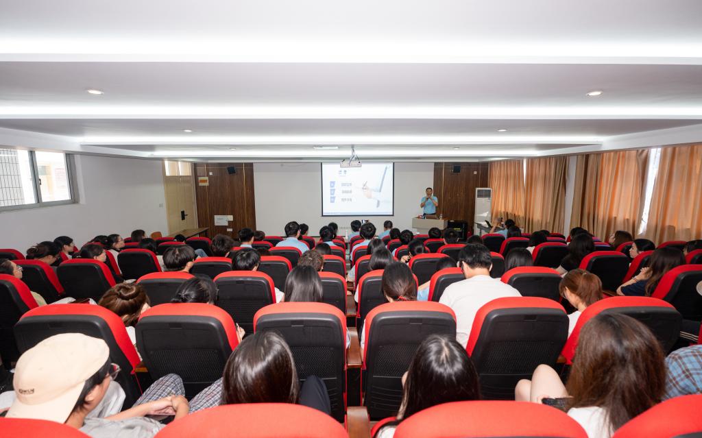 讲座中,黄柏集首先介绍了中农立华的企业实力与行业地位。作为农化行业优秀的央企上市公司、国内农化流通领域领军企业,其全国农化分销渠道稳居第一,业务覆盖全球90余国。他详细分享了公司的发展历程、经营业绩、组织架构与未来战略,并重点解读了企业构建的管理、专业双通道职业发展体系,以及完善的培训与薪酬福利体系,让同学们直观感受到企业为员工提供的广阔成长空间。