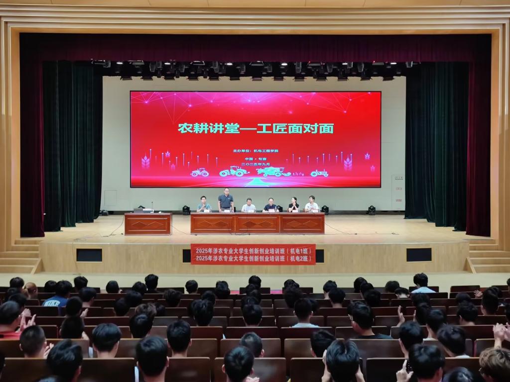 学院同步举行“技能导师聘任仪式”与“农耕讲堂—工匠面对面”活动。仪式上,学院领导为中国一拖集团“大国工匠”王建华、久保田农业机械(苏州)有限公司“江苏工匠”梁双翔颁发聘书,正式聘请两位工匠担任学生技能导师。随后的讲堂中,王建华分享从普通技工成长为大国工匠的经历,鼓励新生“扎根专业、苦练技能,在平凡岗位上创造不凡”;梁双翔结合农业机械行业发展,讲解企业对技术人才的需求标准,还现场解答新生关于“职业技能提升方法”“职场适应技巧”的疑问。智能制造工程系新生听完分享后说:“王建华大师从学徒到大国工匠的经历太励志了,他说‘技能没有捷径,只有反复练’,这句话让我印象特别深。以后我们也要以两位工匠为榜样,踏实学好专业技能,争取成为一名能为农业机电行业做贡献的技术人才。”两位工匠的分享接地气、有干货,让新生深刻理解“工匠精神”的内涵,也帮助他们树立了技能成才的明确目标。