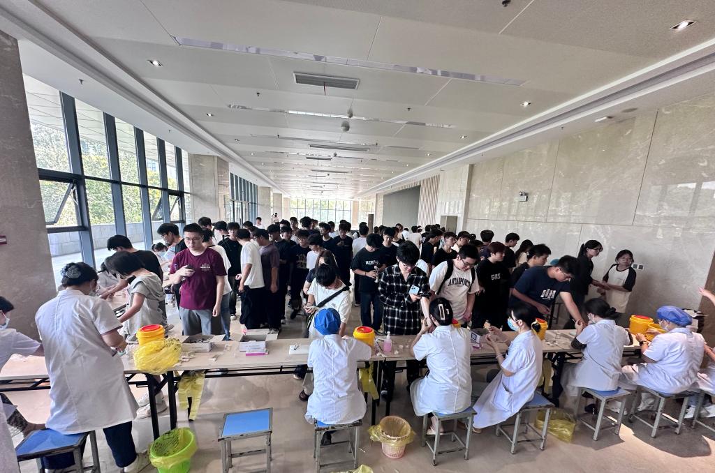 有序流程中的效率之美。筛查现场呈现出井然有序的和谐画卷:志愿者们身着统一标识,像校园里的导航员般引导新生分流排队;医护人员以三人为一组形成流水线,从信息核对到皮肤消毒,再到精准注射,每个环节都衔接得恰到好处。特别设置的爱心通道为行动不便的学生提供优先服务。这种科学规划下的高效运转,让新生们深刻感受到学校管理的专业与细致。