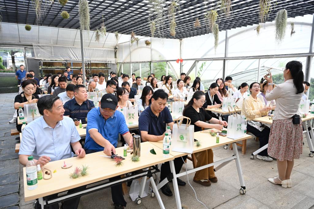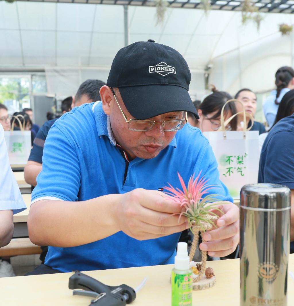 首先,大家参观了生态大道、草莓科技小院、植物科技馆、空气凤梨馆等江苏农博园农业科技示范点,探索植物生长奥秘,了解现代农业前沿技术。随后,研学教师为大家讲解示范了空气凤梨的生长习性、养护技巧、生态价值等知识。大家充分发挥想象力与创造力,精心搭配组合,将绿色植物与艺术创作巧妙结合,创作了形态各异的空气凤梨创意作品,在实践操作中进一步加深对绿色理念的理解。
