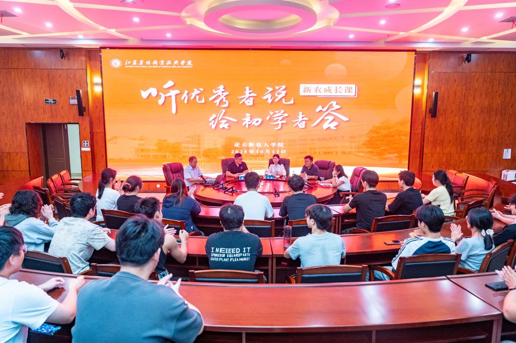 10月11日晚,亚夫新农人学院在大学生艺术中心107举行“听优秀者说,给初学者答”新农人座谈交流活动。活动邀请扬州贵人生态农业科技有限公司总经理祁贵仁、江苏胖墩墩农业有限公司董事长杨敏、泰州市兴化市丰成果蔬种植家庭农场负责人陈城、宿迁市泗阳伊田农业发展有限公司负责人王蒙妹四位嘉宾现场座谈交流,亚夫新农人学院“农创班”的学生参加交流。