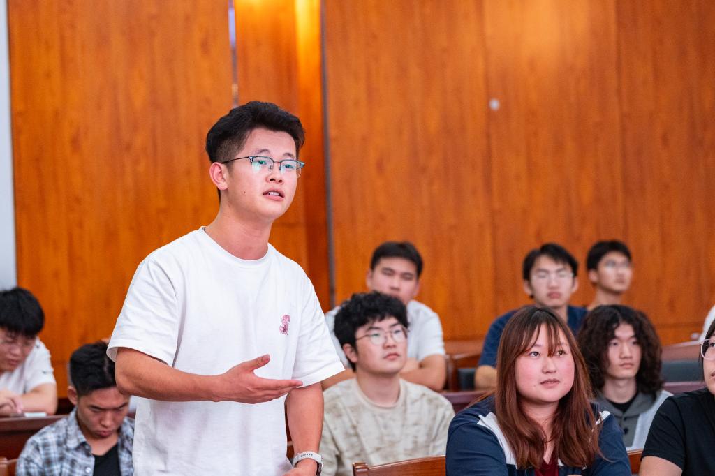 在听优秀者说环节,四位嘉宾分别从人生选择、科技赋能、模式创新、理念革新四个维度介绍了自己在农业生产上的蜕变之路。嘉宾们用动人的故事、鲜活的案例介绍了自己如何从城市回到农村、用科技改变生产、将网络流量变成“新农资”以及坚守乡村带领乡亲致富的精彩故事,在场的学生听的如痴如醉。在给初学者答的环节,学生积极发言,围绕着新农人需要哪些技术储备、如何获得创业启动资金、如何选择合适的产品销售模式等问题与嘉宾开展面对面交流。