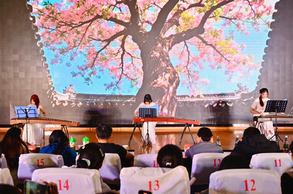 在“启航”篇章,男弹唱《安河桥》以温柔旋律诉说对校园生活的美好期许,古筝合奏《鸟之诗》用清雅乐声勾勒初入校园的悸动与美好,舞蹈《恋爱告急》以灵动舞步演绎新生们的青春朝气,共同拉开新生校园旅程的序幕;“筑梦”篇章中,独唱《如愿》以深情嗓音传递成长祝福,小品《稳赚不赔》用诙谐桥段提醒新生慎防诈骗,钢琴小提琴合奏《幻昼》借悠扬旋律编织校园理想,展现新生逐梦路上的坚定与向往;“绽放” 篇章里,武术《水龙吟》凭刚劲招式彰显少年气魄,朗诵《正青春》以铿锵语调欢迎新生融入学院大家庭,歌曲串烧《微微》《Always Online》《奔跑》用活力旋律点燃逐梦热忱,葫芦丝《荷塘月色》则以婉转乐声勾勒校园雅韵,尽显新生多元风采。