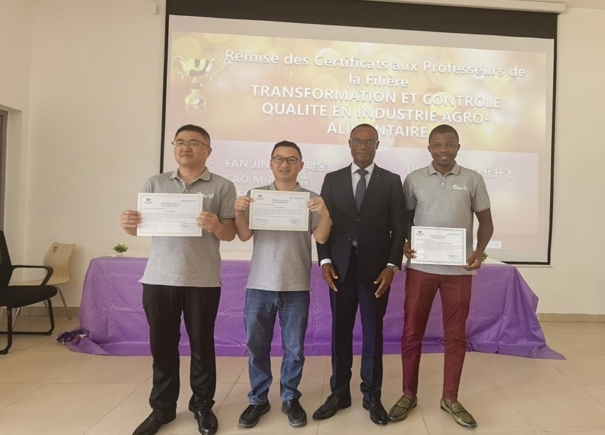 科特迪瓦农产品加工和流体食品加工专业师资培训项目由我院茶与食品科技学院承担,该项目隶属于中航国际成套设备有限公司(简称“中航成套”)与科特迪瓦技术教育、职业培训和学徒部合作的科特迪瓦七所职业培训学校设计、建造、装备及协助运营维护项目。项目于2023年9月15日至2024年1月14日完成国内培训任务,今年完成了海外师资培训。2025年7月18日至10月24日,曹淼、樊金山、李涛、代升飞4位老师先后赴科特迪瓦迪亚博校区完成了焙烤食品加工、乳制品加工、果蔬制品加工、肉制品加工、咖啡(可可)制品加工、食品理化检测技术、食品微生物检测技术等项目培训。