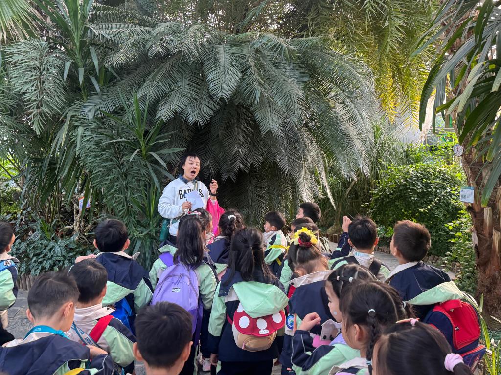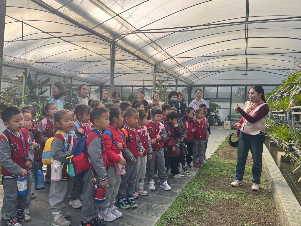 在农博园研学老师的带领下,孩子们依次参观了百花溪、生态大道、中草药园、植物科技馆、空气凤梨馆、5G草业馆、江苏现代园艺工程技术中心。在中草药园,孩子们通过“看形态、摸质感、辨特征”的方式,认识辨别了有较高药用价值的白芨和黄精;在空气凤梨馆,见识了无需土壤即可生长的神奇植物空气凤梨;在植物科技馆,直观感受了二十四节气农业知识科普展板、立体式栽培等现代农业技术展示。