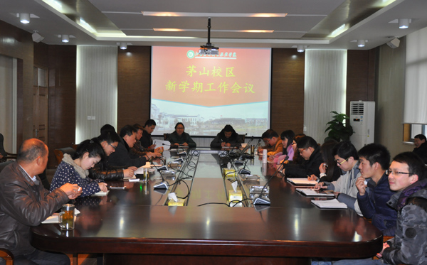 2月28日上午,茅山校区召开了全体工作人员新学期工作会议,学院党委副书记王润贤出席会议。 会上,校区管委会汪国好主任阐述了校区2015年的工作思路,并全面细致地部署了新学期任务,要求大家进一步提升教育教学管理水平,推进规范化管理,促进校区学生全面发展。随后,校区相关负责人分别就新学期的教学和学生管理工作进行了部署。 最后,王润贤副书记对校区过去一年取得的成绩表示了肯定,要求全体校区师生在新学期里发奋进取,以创建国家优势学校为工作重点,努力打造具有茶文化的特色校区,助力学院教学事业。