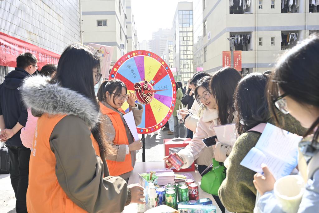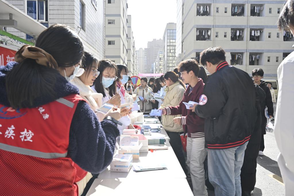 11月28日上午,学院南校区食堂广场的线下主会场热闹非凡,四大功能区同步开放、秩序井然。宣传展板区,疾控中心制作的展板系统展示了防艾核心知识、警示案例及免费检测信息,让师生快速掌握关键要点;咨询答疑区,专业人员面对面解答疑问,发放防艾宣传资料与防护用品;有奖问答区人气最旺,学生随机抽题作答,答对即可兑换钥匙扣、便签本等小奖品,在趣味互动中巩固防艾知识;作品展示投票区,防艾手绘海报集中亮相,色彩鲜明的原创作品传递着 “防艾不防爱”的理念,师生驻足欣赏并为心仪作品投票。
