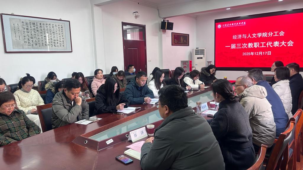 12月17日下午,经济与人文学院分工会第一届教职工代表大会第三次会议在经文楼201会议室召开。学院党委委员、副院长毕德全出席会议,教代会代表及列席人员齐聚一堂,共商学院发展大计,共绘高质量发展新蓝图。会议由经济与人文学院党总支书记李丽主持。