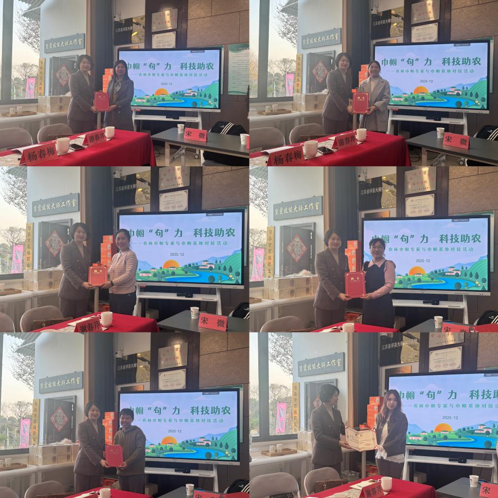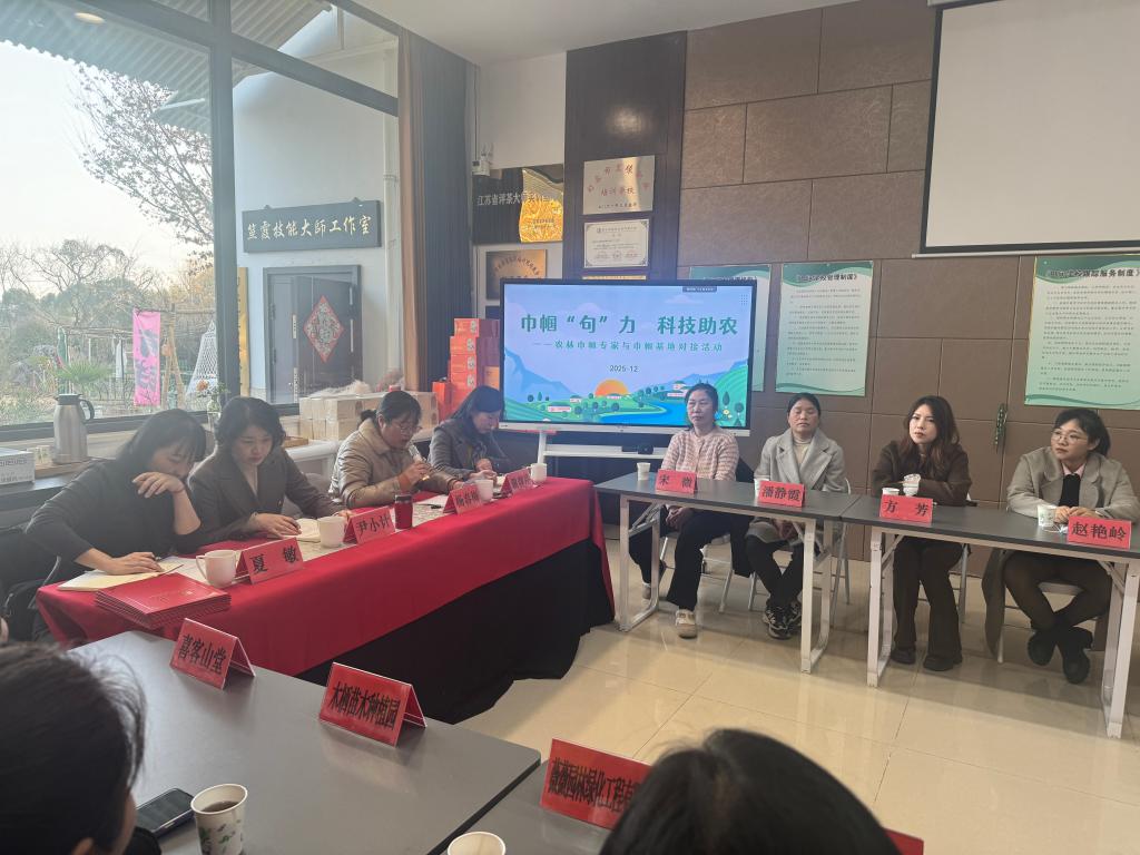 为深入贯彻“科技创新巾帼行动”与“乡村振兴巾帼行动”,推动科技资源下沉乡村一线,2025年12月16日下午,学院妇联组织女科技专家团队,赴句容市巾帼农业基地开展对接服务活动。谢春芹、宋微等涵盖种植、养殖、园林、营销等多领域的6位女科技工作者参与,句容市妇联负责人、各乡镇妇联主席及多家巾帼基地代表共同参加。