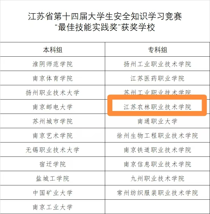 近日,江苏省第十四届大学生安全知识竞赛安全技能实操比赛成绩揭晓,我院代表队凭借扎实的技能功底和出色的临场表现,以满分成绩荣获“最佳技能实践奖”。