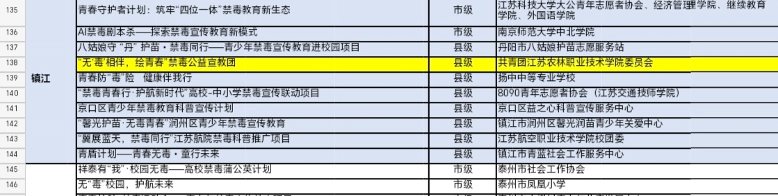 近日,从共青团江苏省委、江苏省禁毒办公室传来喜讯,由校团委推荐、信息工程学院申报的《“无‘毒’相伴,绘青春”禁毒公益宣教团》项目,经严格评审,入选2026年江苏省青少年禁毒宣传教育“双百计划”。