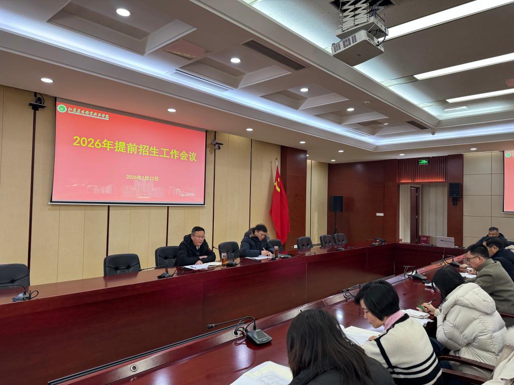 近日,学院召开2026年招生工作会议,全面启动并部署新一年招生工作。党委委员、副院长毕德全,学生工作处、各二级学院党政负责人出席会议。会议聚焦2026年提前招生工作,明确了工作重点与纪律要求,为新学年招生工作有序、高效、规范开展奠定基础。