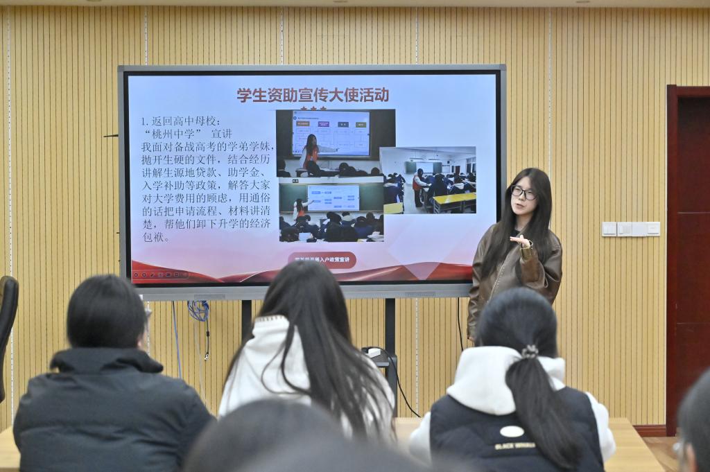 志愿青春红笃行担使命。3月22日,“爱之翼”志愿服务实践团22名学生资助宣传大使在研发楼二楼活动室开展寒假社会实践分享会,共同回顾实践历程,分享成长感悟。在经验交流环节,同学们各抒己见、相互启发,围绕如何高效开展国家资助政策宣传工作展开了深入探讨,从宣传方式的选择到宣传内容的优化,从与群众的沟通技巧到团队协作的重要性,每一个话题都引发了大家的热烈讨论。通过思想的碰撞与交流,同学们不仅梳理了资助政策宣传实践的工作成效,更在相互学习中凝聚了工作共识,明确了未来的努力方向。
