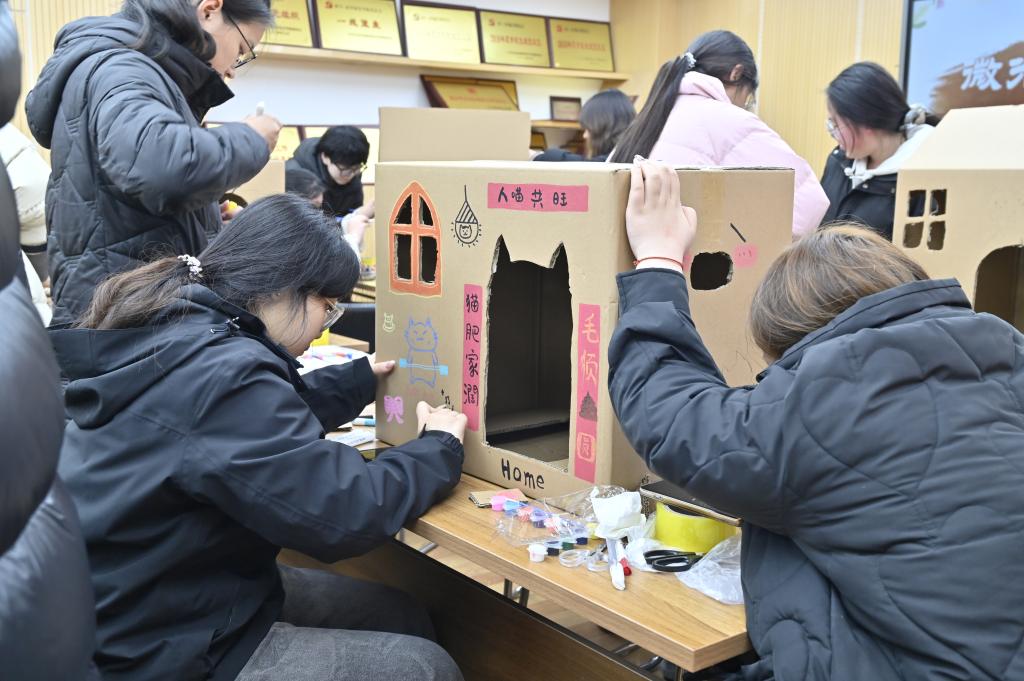 青春志愿红,巧手筑暖窝。3月18日,学院30多名受助学子为校园流浪猫搭建温暖小家,在实践中践行感恩、传递温情。手工制作现场,同学们分组协作,手持工具裁剪组装、细致做好防水加固,并且还巧用彩笔、颜料为猫窝点缀装饰,让每一个猫窝既结实,又饱含青春心意与温暖。同学们将猫窝放到了流浪猫经常出现的草丛中,把温暖送到了小猫身边。这些精心制作的小窝,不仅为流浪猫提供了遮风挡雨的避风港,也成了校园中一道亮丽风景线。