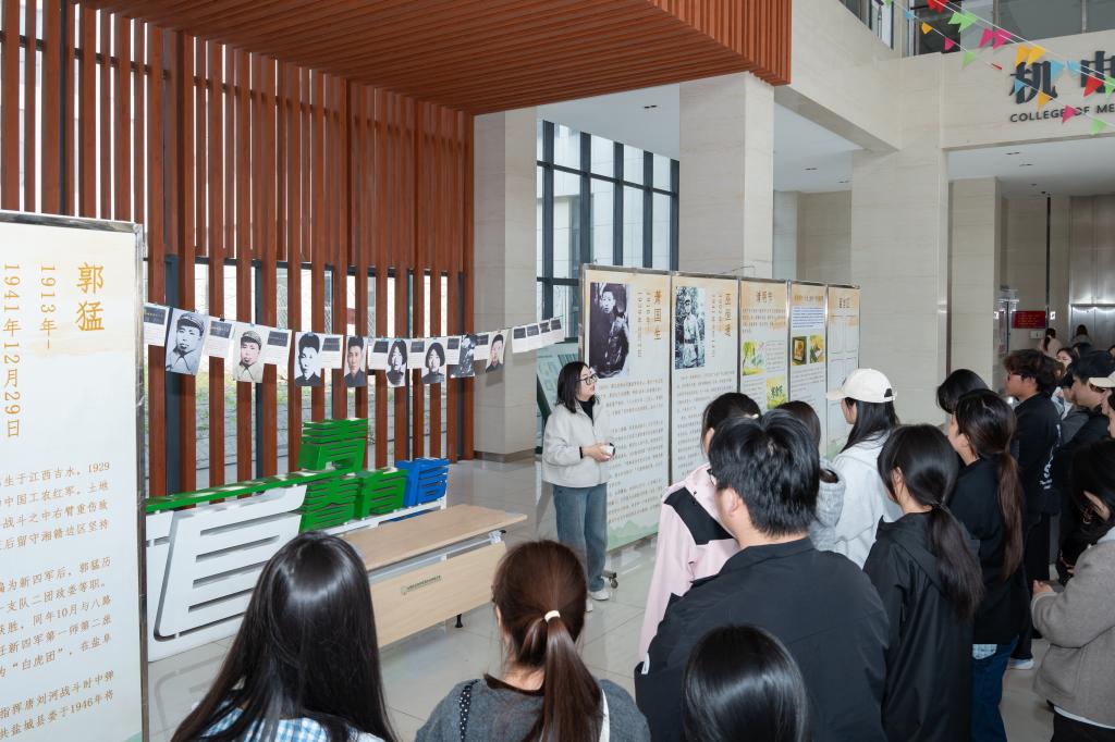 活动现场设有英烈事迹、清明文化、文明祭扫三大展区,向现场参观的同学们传递革命精神与传统文化,倡导绿色祭扫理念。数媒专业志愿者现场展示AI修复英烈照片的全过程,将专业技能应用于红色文化传承,实现专业教育与思政育人同频共振。