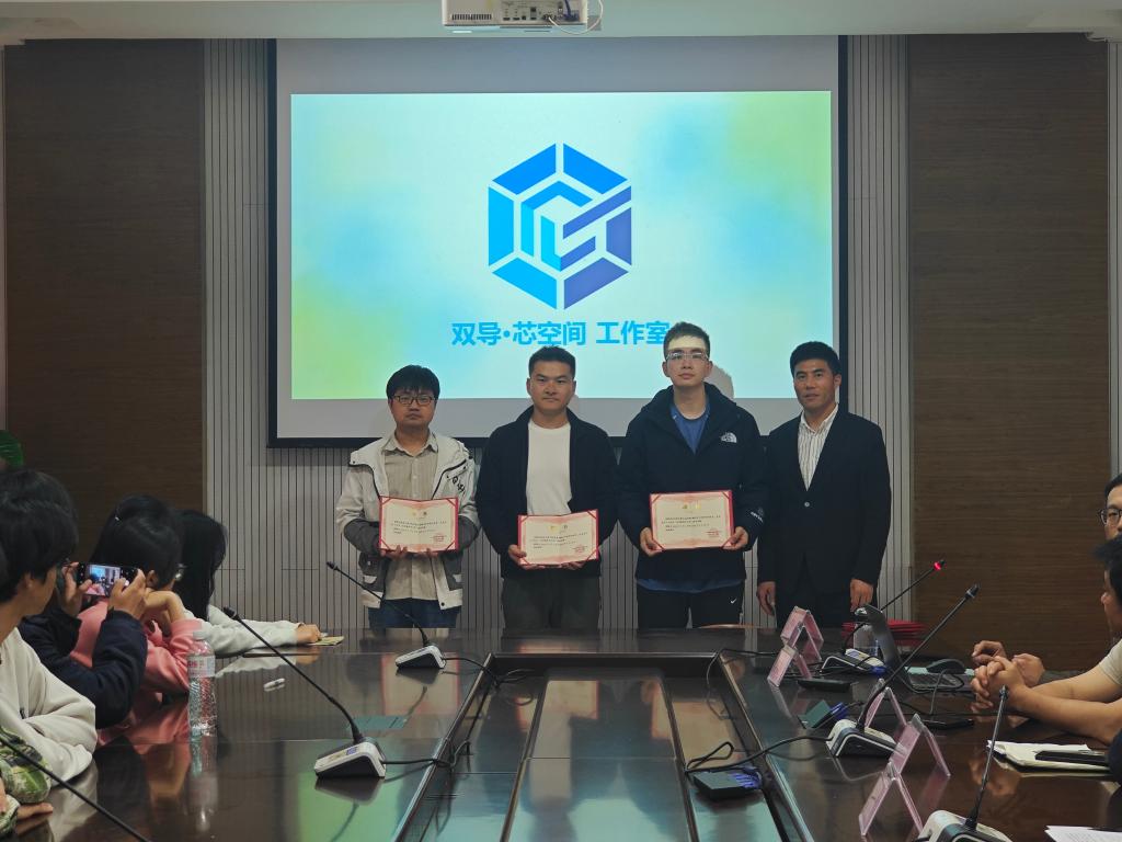 茅山校区以“专业引领+日常陪伴”为核心,构建双重育人体系,推动大一学生“早进项目、早练能力、早出成果”。与信息工程学院共建“双导・芯空间”“双导・智绘工坊”“双导・AIGC”三大特色工作室,实现4位专业导师与2位辅导员精准结对,吸纳38名学生。启动仪式上,校区管委会副主任李国晓介绍了工作室的建设背景、筹备情况与发展规划,公布首批专业导师与辅导员结对名单,并现场进行了工作室揭牌、导师聘书颁发。与会师生围绕工作室运行机制、培养路径、学科竞赛训练等核心内容展开深入交流,为工作室高效运行凝聚共识、明晰方向。校区党总支负责人杨红进表示从专业引领、学生成长、内容建设三个方面提出工作要求,强调要以工作室为抓手,深化校区与二级学院协同,全面助力学生成长成才。