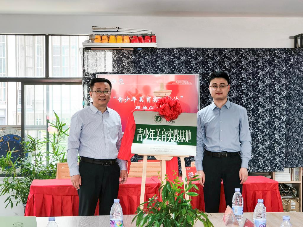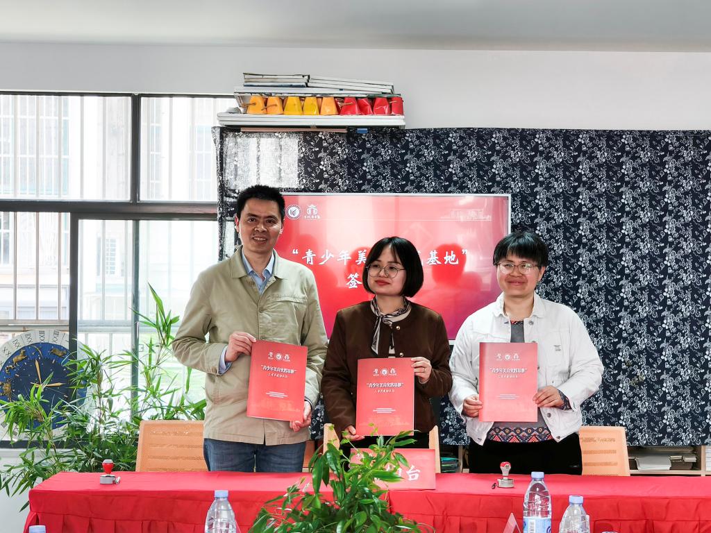 随后,三方代表正式签署合作共建协议,毕德全与姜雯荣主任共同为“青少年美育实践基地”揭牌,标志着该基地正式投入运行。