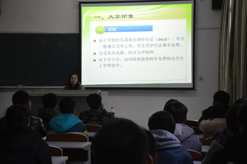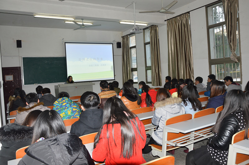 近日,信息工程系邀请该系副教授吕秀芹老师开展了“导师有约”主讲活动。该系团学干部、班级学生近50人参加了本次活动。 吕秀芹老师生动形象地从大学印象、中美学生之比较、自然环境、人文环境四个方面分享了在美国一年生活的感受、感想,重点讲述了美国校园的课程设置、大学课堂、校园文化、学习态度、同学交往等方面的情况。最后还安排了现场提问环节,吕秀芹老师对同学们的提问逐一进行了回答。 此次活动,开阔了同学们的视野,发挥了导师作用,利于促进学生成长。