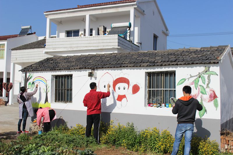 12月3日、4日,人文艺术系组织50余名艺术专业学生,分两批前往句容市白兔镇唐庄村开展了为期两天的美丽乡村彩绘墙行动。 在省级“美丽乡村”建设示范村——唐庄村的主干道两侧和核心区域,学子们挥舞画笔,拨弄色彩,画面中或结合唐庄葡萄村特色,或绿色环保主题或新农村主题,一幅幅色彩鲜艳的画面让寒冬顿生暖意,让枯树添加春意,受到了唐庄村委会和村民的大力赞赏。 根据镇江团市委校地共建和区域化团建工作要求,在院团委的带领下,人文艺术系分团委积极参与到服务地方建设中,多次举行送艺术下乡活动,不仅给乡村增色,更给学院增彩。
