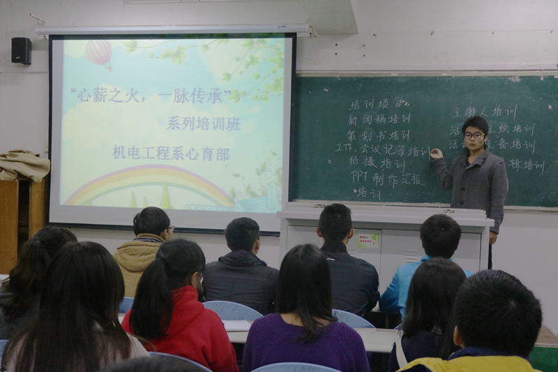 为更好地开展系部心理健康教育工作,11月22日-12月3日,机电工程系心育部举办了“心薪之火,一脉相承”系列技能培训班。新闻写作、活动策划、PPT制作、视频拍摄剪辑等培训课程让参训学员们乐在其中,互动不断,心育部与大学生服务站成员的综合工作能力也得到了进一步提升。