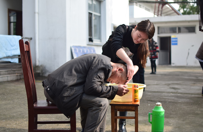 3月13日,茅山校区义工社联合句容市义工团前往石狮敬老院开展以“学雷锋关注弱势群体,敬老院奉献青年热情”为主题的志愿者活动。 到达敬老院后,志愿者们向工作人员了解了有关情况后,便分组进入老人们的房间开展志愿服务。志愿者们有的陪着老人们聊天、有的搀扶着老人到院子里散步,还有一些为老人捶背、擦脸、剪发等。老人们脸上洋溢着感动的笑容,为志愿者们竖起了大拇指。