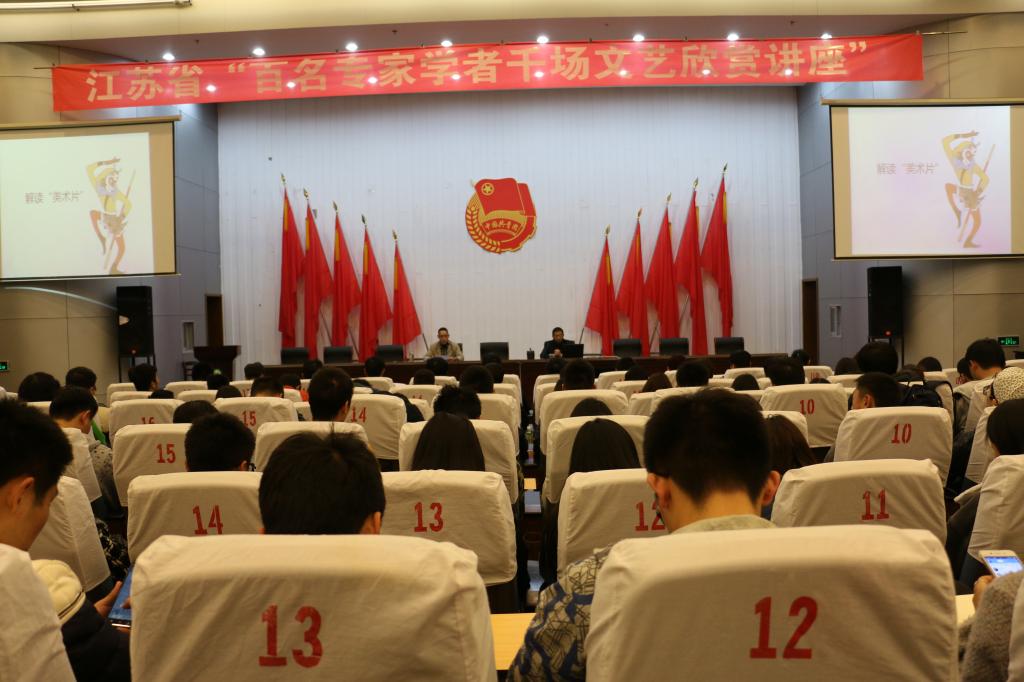 3月31日,江苏省“百名专家学者千场文艺欣赏讲座镇江专场”在我院图书馆报告厅举行。作为第六届大学生读书节众多活动中的一项,此次讲座由学院图书馆和句容市图书馆联合组织。