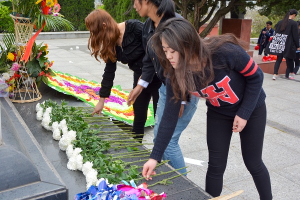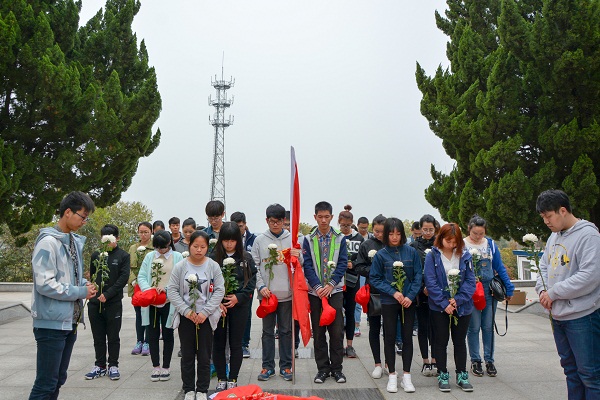 经过一个多小时的行进,同学们准时到达句容市烈士陵园,在肃穆的氛围中大家不约而同的凝重下来,在缓缓哀乐声中,大家通过默哀三分钟、学生代表发言、敬献小白花等环节向烈士们致以崇高的敬意。随后同学们小心的清理了烈士墓周边的杂物。