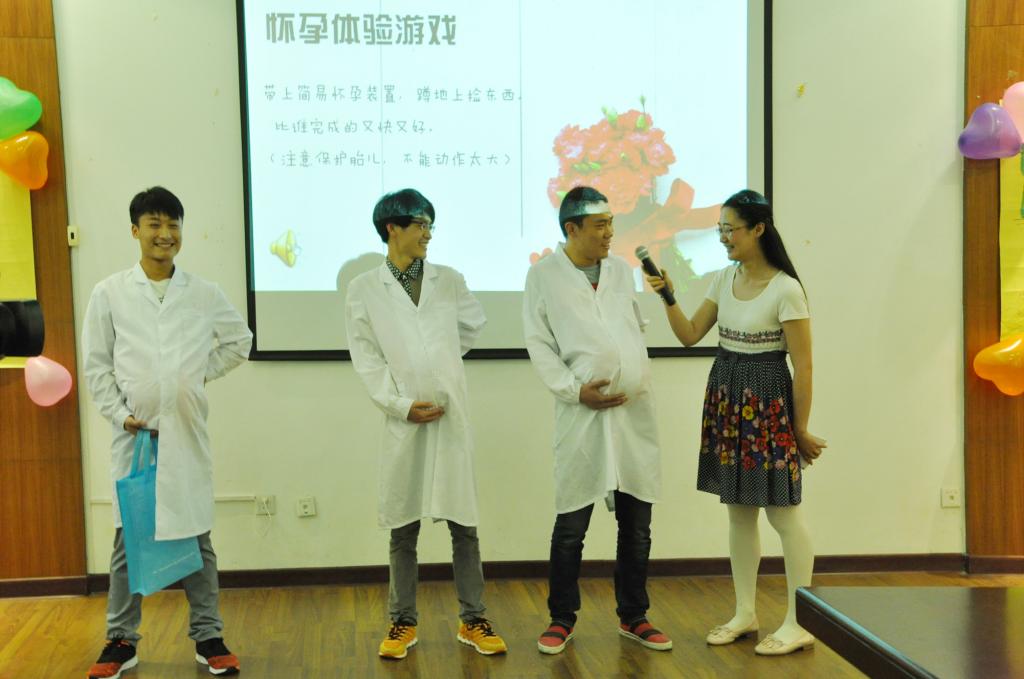 5月6日中午,“爱在心中,感恩母亲”体验活动在图书馆中层干部会议室举行。12位宿管阿姨与40多位学生一起通过视频观看了母亲分娩的过程。3位同学戴上了简易的怀孕装置,体验了母亲十月怀胎的辛苦。活动最后,同学们将红色康乃馨和写着祝福的卡片,送给在场的宿管阿姨,感谢阿姨平日里像妈妈一样的关心与照顾。