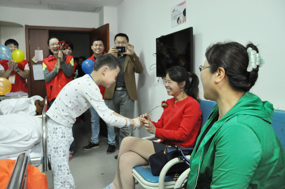5月8日,母亲节当天,系部志愿者来到句容人民医院儿科病房,开展了“五月康乃馨,爱心送母亲”活动,为在这里陪伴儿女的妈妈们献上节日的惊喜。志愿者们通过提问、奖励的方式让小朋友们了解母亲节,鼓励孩子们将康乃馨转送给妈妈。尽管许多小朋友对于“母亲节”的概念十分懵懂,但他们还是愿意用稚嫩的双手将花朵传递给妈妈,让现场的妈妈们欣慰不已。