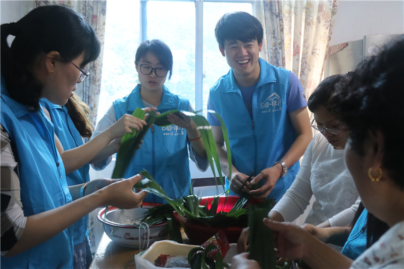 学生党员们带上粽叶、糯米、红枣等食材来到老教师家,张奶奶的热情接待让党员志愿者们倍感温暖。学生党员们在张奶奶的指导下,有模有样地包起粽子,过程中的学习、合作、调皮为老教师们带去了开心的笑声。结束后,党员志愿者们围坐在老教师身边,听他们讲老一辈革命者的故事以及他们的人生感悟,学生党员们感触颇深。