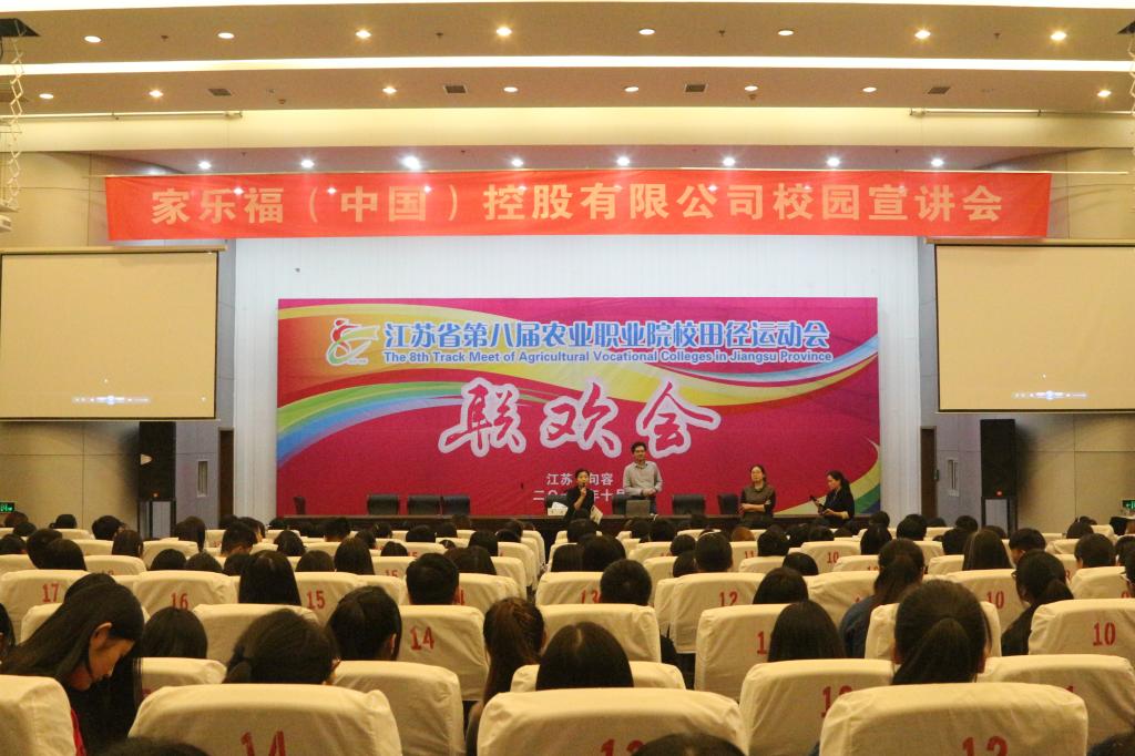 10月19日下午,家乐福(中国)管理咨询服务有限公司在我院图书馆报告厅举办了一场校园招聘宣讲会,300余名2017届毕业生参加了活动。