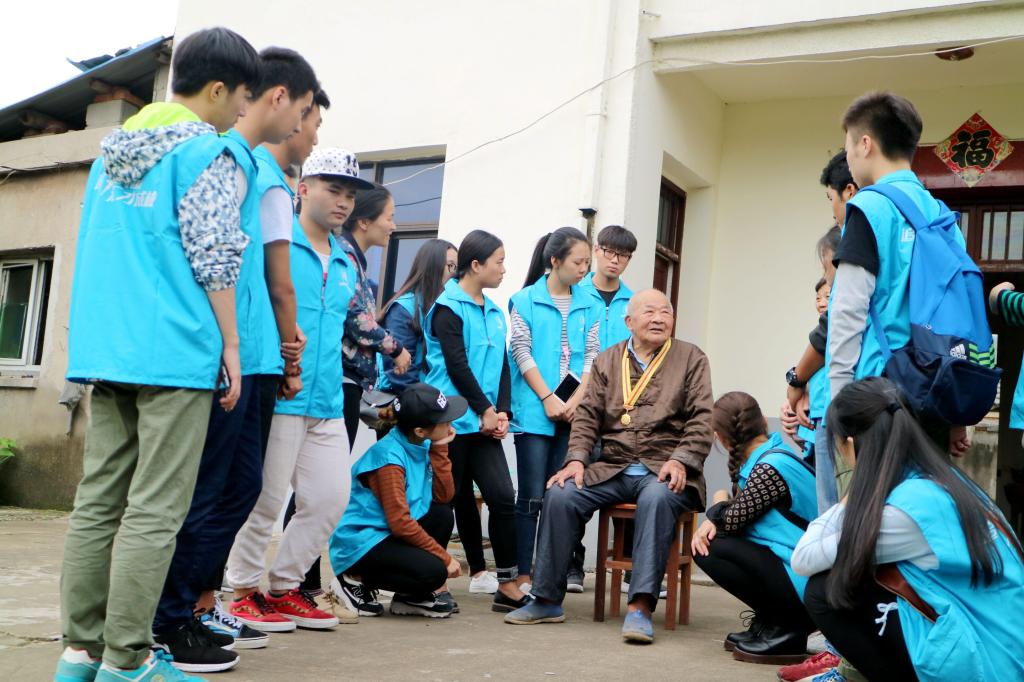 志愿者们从学校出发,步行5公里来到抗战老兵居住的地方——句容市下甸村,给老人带来慰问品,聆听老人讲述他的峥嵘岁月。当晚,志愿者们再次齐聚研发楼B301,观看了以抗美援朝战争为主线的教育电影《我的战争》,详细了解了抗美援朝起因,以及上甘岭战役等著名战役经过,并为牺牲的战士们默哀致敬。