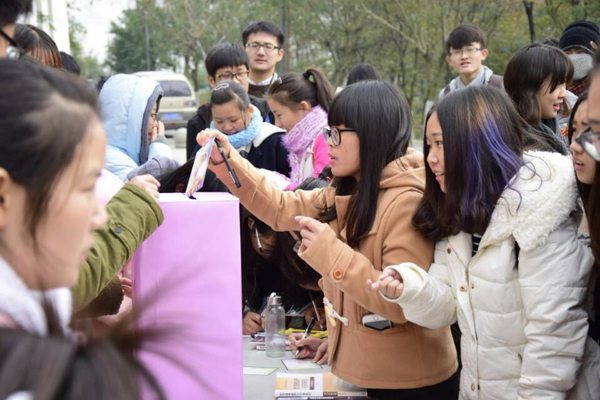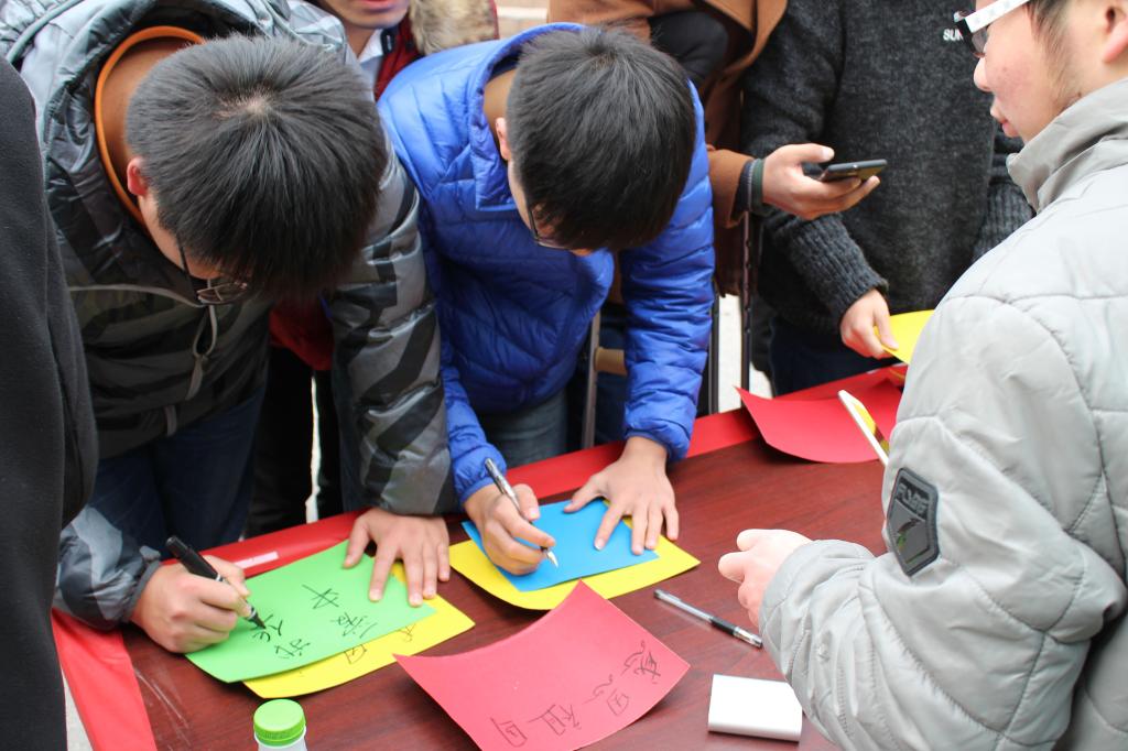 茅山校区“你的感恩、我来传递”感恩节活动在全校区展开。1700余名学生参与活动。活动分三个环节,分别是感谢有你,感恩的信和感恩之树。感谢有你——向校区默默辛苦劳动的环卫工人和宿管员阿姨表示感谢,志愿者们帮助他们一起收垃圾,清理宿舍门口的地面,送上了温馨的感恩早餐。感恩的信——由校区心育部的同学在食堂门口发放明信片,同学们写上自己感恩的话和收信人,由专门的“邮差”送到各个“被感恩”的人手上。感恩之树——课间时分,同学们集中在明亮楼中心小广场上,在丝带上写下了感恩的话语,又亲手将丝带系在感恩树上,希望能把这份感恩之情带至远方。