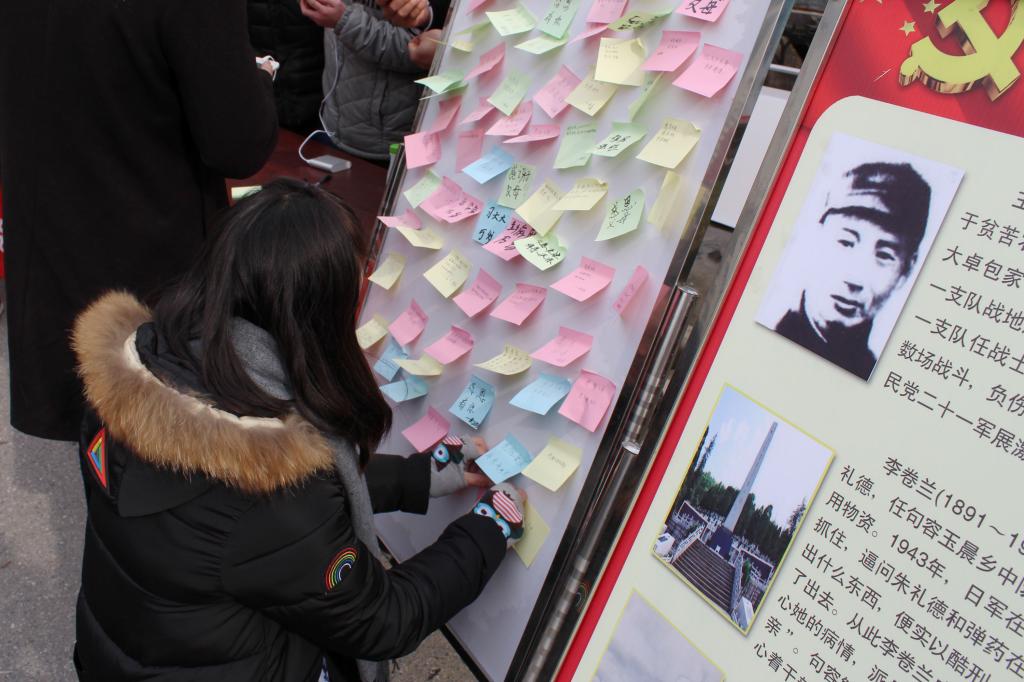 机电工程系学生党支部在食堂门口举办了“红色传情感恩予心”的感恩节主题活动。活动现场陈放了印有中国共产党发展历程和句容地区杰出革命先烈事迹的展板,党支部同学还手绘了精美手抄报现场展示。全院同学通过手写寄语的方式表达了对祖国、党和革命先辈的感恩之情。