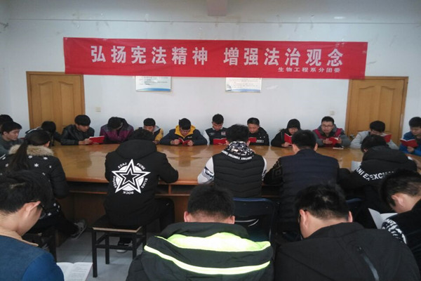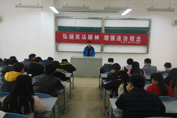 为使广大学生深入了解宪法、尊崇宪法,引导学生形成学法、知法、守法、护法意识,生物工程系分团委近日开展了“弘扬宪法精神 增强法治观念”学宪法讲宪法系列活动。