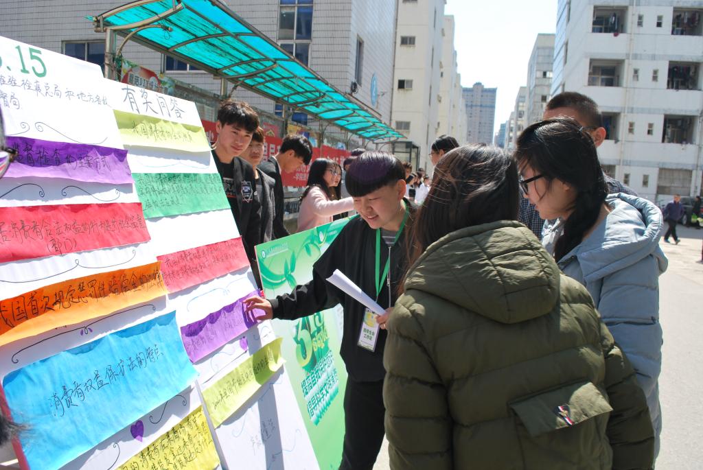 活动现场,通过展板宣传,将大学生在日常消费过程中容易遇到的侵权行为以及如何维护自身合法权益的案例展示给同学看。同时,现场设置3·15消费者权益知识有奖问答,通过参与回答问题,让同学们更好的了解消费者权益内涵,便于在以后的生活中运用法律维护自己的合法权益,避免被侵权。