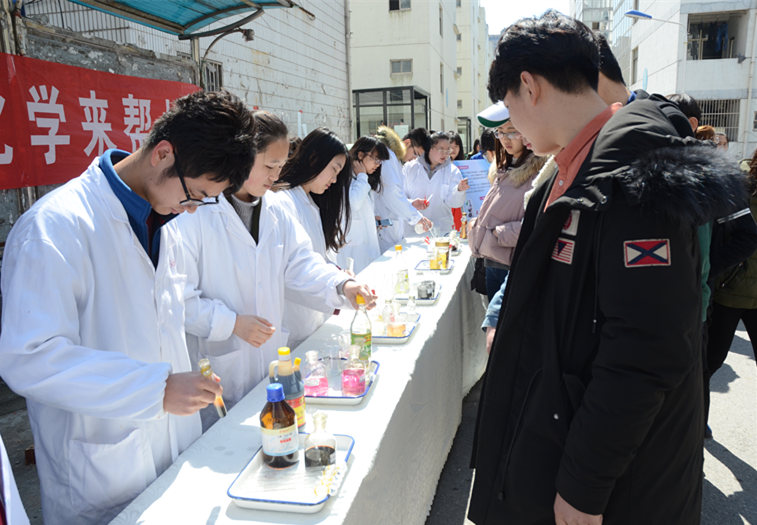 生物工程系《化学与生活》社团在食堂门口举办“3·15辨别真伪,化学来帮忙”活动。