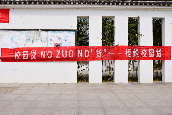 为了让更多同学意识到校园贷的危害性,树立正确的消费观,茅山校区分团委于3月15日在食堂门口开展了“拒绝校园贷”宣传活动。 活动宣传形式多样,校区街舞社的同学们通过新潮的街头快闪表演吸引同学驻足观赏,现场也拉起了“校园贷NO ZUO NO“贷”——拒绝校园贷”字样的横幅,同学们纷纷签字,以表达拒绝校园借贷的决心。活动现场还贴有关于校园贷案例的手抄报,食堂内电视屏幕上播放有关校园贷危害的视频,丰富的形式进一步加深了学生对校园贷危害性的了解。