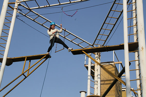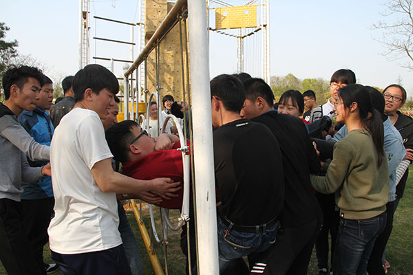 本次活动中进行了“买菜”、“找朋友”、“齐心鼓”,“贪吃蛇”,“电网”,“高空断桥”等破冰、协作、竞争等主题的拓展活动。活动中,同学们欢声笑语,掌声不断,大家在老师的带领与鼓励下,团结合作,齐心协力完成了一个又一个的项目挑战。在欢快轻松的氛围中,同学们加深了对于彼此的感情,学会了互相信任、互相合作。