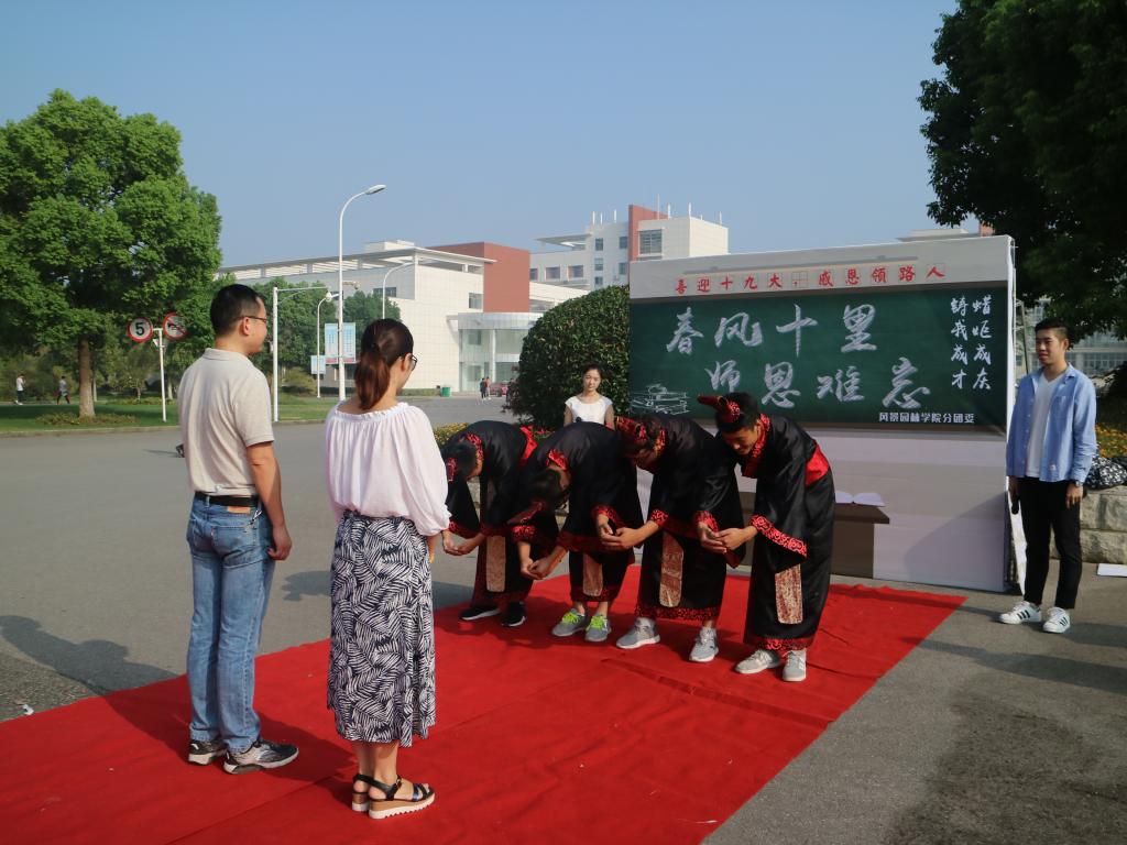 为弘扬“尊师重道”中华民族传统美德,热烈庆祝第33个教师节,9月8日上午,风景园林学院分团委在北校区门口开展了“春风十里师恩难忘”教师节主题活动。
