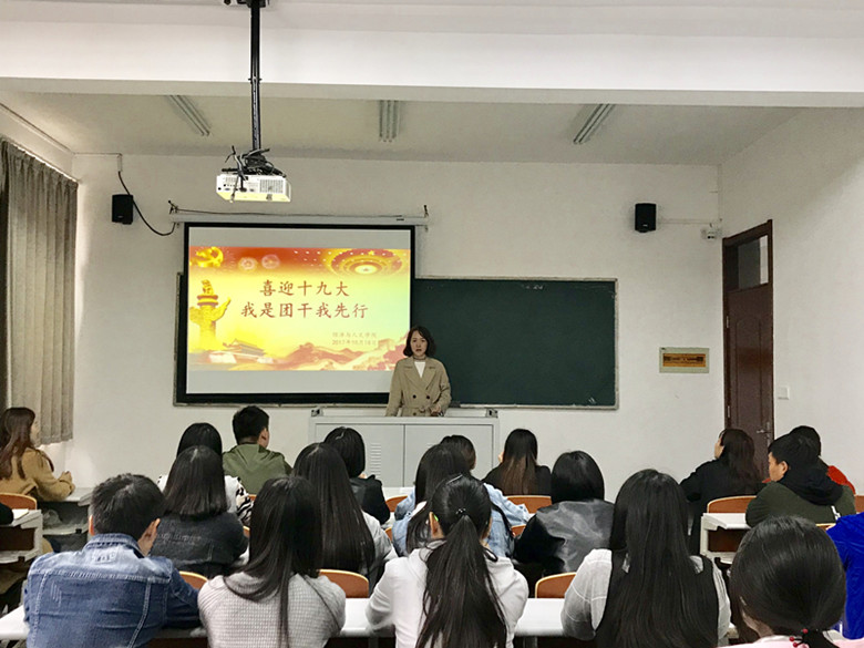 10月18日下午,经济与人文学院在文科楼举办了“喜迎十九大,我是团干我先行”主题活动,学院46名团支书参加了此次活动。