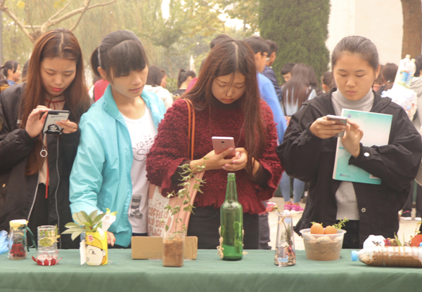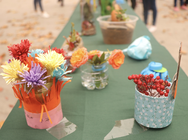 11月1日—11月8日,茅山校区开展了“倡导环保、变废为宝”废物利用活动,校区各班级积极参加。 学生们将废弃的塑料、纸箱、光盘等制作成实用性的笔筒、垃圾桶、取衣架等,这些作品设计合理、富有美感并且风格鲜明,体现了积极健康的精神风格。独特风格的作品不仅令参观的同学叹为观止,更让他们认识到了废品也有宝贵之处,充分体现了校区学生的创新精神和动手能力。