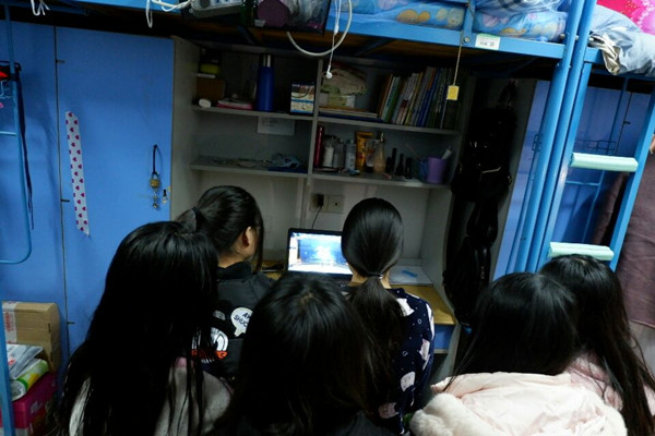学生在宿舍集体观看视频 |