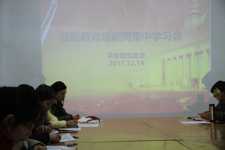茶与食品科技学院党总支以2017年第4期“远程教育培训周”活动为契机,于12月13—14日,组织学院全体党员运用远程教育系统,围绕“学习贯彻十九大精神”主题开展集中学习。