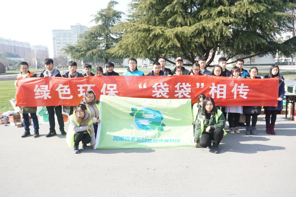 近日,风景园林学院在北校区教学楼前举办“绿色环保,袋袋相传”环保宣传活动。